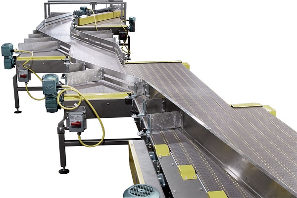 無壓力鏈板輸送機解決了中、高速瓶裝灌裝線或者空瓶輸送系統(tǒng)中由多列輸瓶變單列輸瓶時擠瓶、卡瓶、倒瓶、破瓶、噪聲大、運行不穩(wěn)定等問題,它是由一段多列速度不等的三段鏈板輸送機組成,長約需要根據(jù)場地設計,用特別設計的傳動系統(tǒng)將過渡段的速度形成差速,利用速度差將瓶罐由多列逐漸轉變成單列輸送,主要運用在瓶罐類產(chǎn)品的平面輸送環(huán)節(jié),滿足灌裝、貼標等環(huán)節(jié)的輸送的要求,廣泛應用于飲料、啤酒、罐頭、制藥、保健品、汽車配件等行業(yè);輸送鏈板可選用塑料平頂鏈或不銹鋼鏈板,可增加潤滑結構,滿足22400-66000瓶的生產(chǎn)速度;