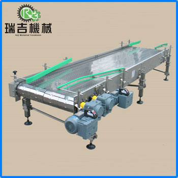 鏈板輸送機(jī)可以滿足飲料貼標(biāo)、灌裝、清洗等設(shè)備的單列輸送的要求,同樣也可以使單列變成多列并行走緩慢,從而產(chǎn)生儲存量,滿足殺菌機(jī)、儲瓶臺、冷瓶機(jī)的大量供料的要求 ,我們可以將兩條鏈板輸送機(jī)的頭尾部做成重疊式的混合鏈,使得瓶(罐)體處于動態(tài)過度狀態(tài),使輸送線上不滯留瓶子,可以滿足空瓶及實瓶的壓力和無壓力輸送。