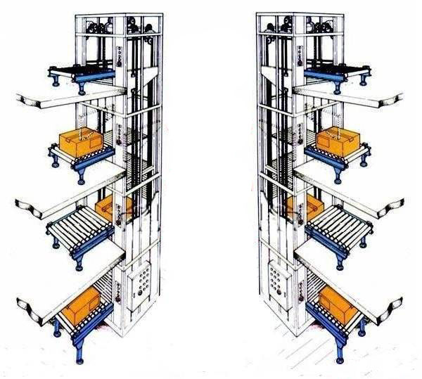 7.升降轎廂的上下行程均可輸送物料,在升降轎廂的一個(gè)循環(huán)過程中可使物料同時(shí)雙方向流動;