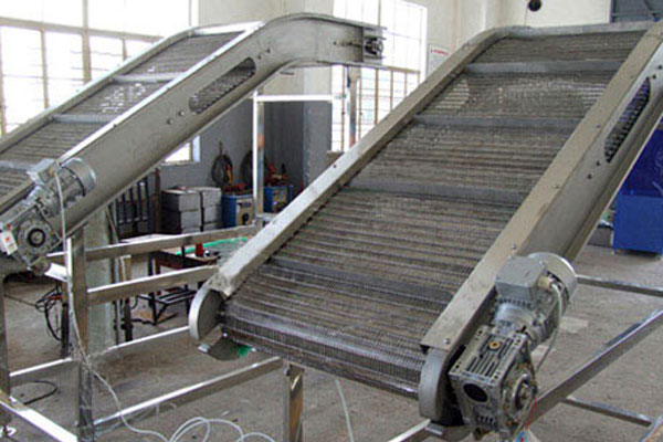 爬坡網(wǎng)帶輸送線適用于樓層或高差間的貨物的連續(xù)輸送。傾斜角度。≤30°)的爬坡網(wǎng)帶輸送機,如果貨物底面的摩察力足夠大,可能采用表面有凸點的防滑網(wǎng)帶;大傾角爬坡網(wǎng)帶機需要在網(wǎng)帶上加擋板或擋邊。從控制角度講,為了防止停機時過重的貨物在重力作用下逆行,驅動電機需要設計有剎車功能。爬坡網(wǎng)帶輸送機是在網(wǎng)帶上加裝檔條、治具、裙邊(擋板)等方式從而使物體能在較大的角度上作提升輸送。具有效率高、輸送快、噪音低、不間斷等特點。特別適合小物料的輸送,如食品、注塑件、粉末以及各種零件行業(yè)。產(chǎn)品說明:爬坡網(wǎng)帶輸送線用于上下樓層、斜坡地形、天橋等具有高差的平面之間的物品輸送。在某些情況下可以代替升降機使用。斜坡網(wǎng)帶輸送線在輸送顆粒狀物品時為防止物品因重力沿著皮帶滾落,每隔一段距離可以加一塊擋板,以方便上料需要。