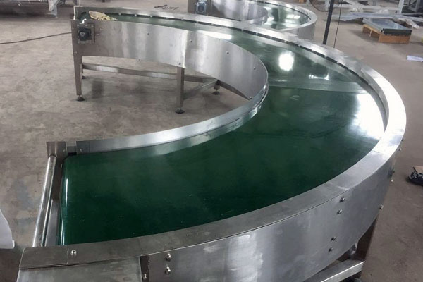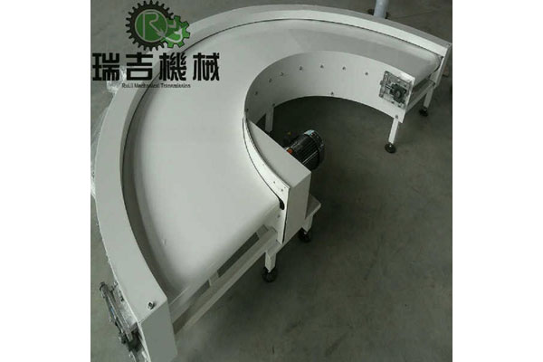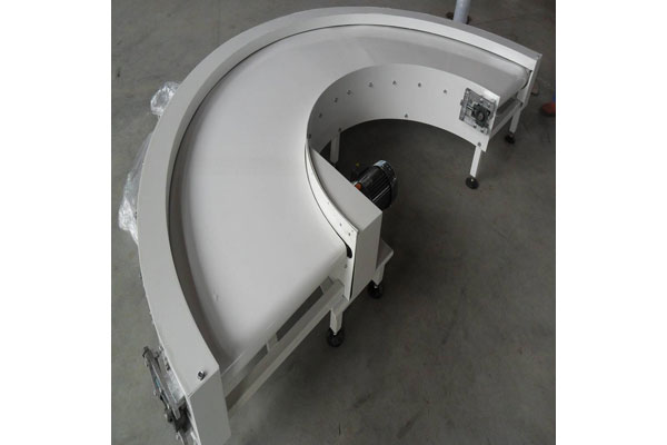 皮帶式轉(zhuǎn)彎輸送線扇形皮帶加裝專用的防跑偏滾輪 (軸承外加聚甲醛POM)或者在輸送帶的外側(cè)高頻焊接導(dǎo)向筋使輸送帶運(yùn)行在專用的導(dǎo)軌中,輥筒采用專用的錐型包膠輥筒,廣泛應(yīng)用在食品、飲料、電子、煙草等行業(yè),我們可以選用較小直徑的滾筒,使轉(zhuǎn)角連接更加方便,解決過渡問題。